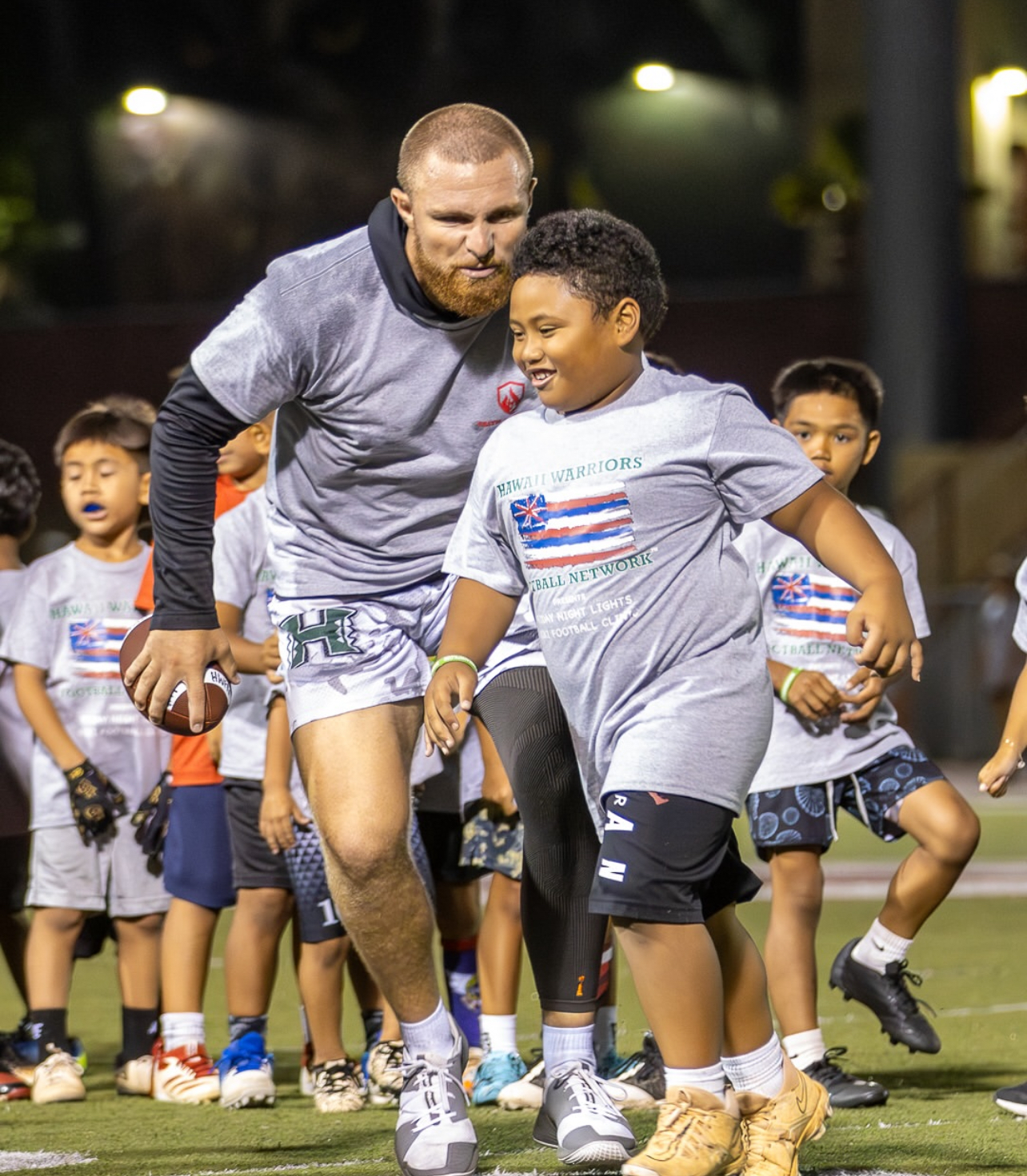 We are overwhelmed with gratitude for the phenomenal response to the Hawaii Warriors Football Network Friday Night Lights Free Keiki Football Clinic!